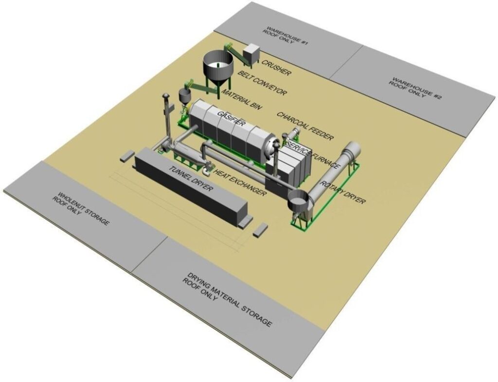 - The Rotary Kiln and the Gasifier-Charcoal Processing Machine protected by Patents.